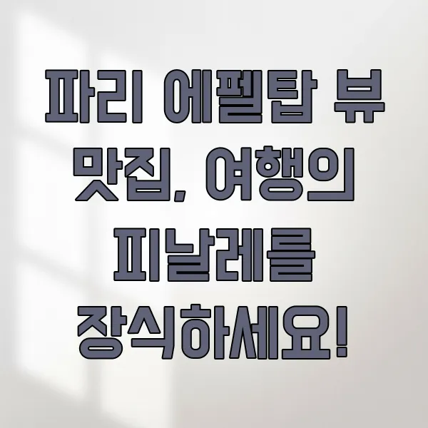 [일반 정보] 본 콘텐츠는 에펠탑이 보이는 레스토랑에 대한 일반 정보 제공을 목적으로 하며, 특정 시점의 정보를 기반으로 작성되었습니다. 레스토랑의 메뉴, 가격, 운영 시간 등은 변동될 수 있으므로 방문 전 반드시 해당 레스토랑의 공식 웹사이트 또는 연락처를 통해 최신 정보를 확인하시기 바랍니다.