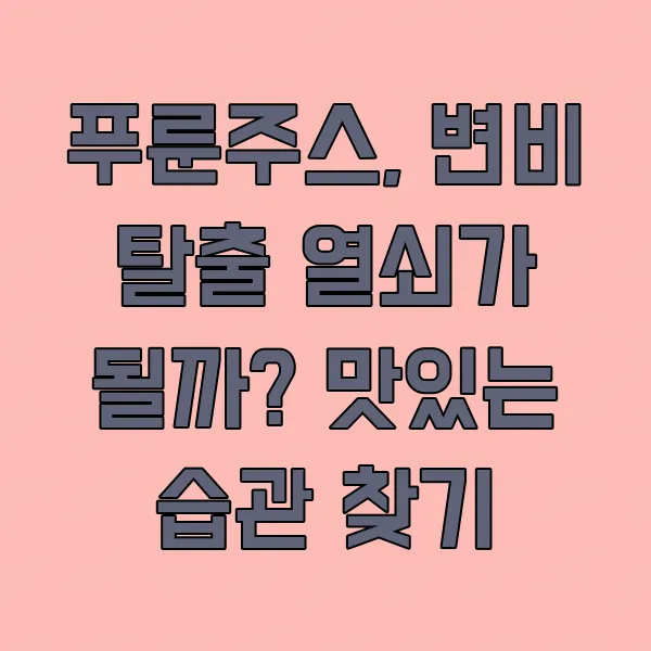 변비 때문에 매일 아침이 힘겹다고요? 묵직한 속 때문에 뭘 해도 개운하지 않은 날들, 정말 지겹죠. 저도 예전엔 변비가 너무 심해서 이것저것 다 해봤거든요. 식이섬유 풍부한 음식도 챙겨 먹고, 물도 많이 마셔보고… 근데 솔직히 꾸준히 하기가 쉽지 않더라고요. 그러다 문득 '푸룬주스'가 눈에 들어왔어요. 옛날부터 변비에 좋다고들 하잖아요? 그래서 오늘은 푸룬주스, 그 효능과 함께 변비 개선에 정말 도움이 되는지, 제가 직접 알아본 내용들을 솔직하게 풀어볼까 합니다.