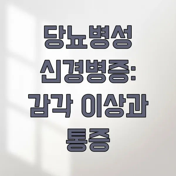 당뇨병성 신경병증 은 높은 혈당이 신경 섬유에 손상을 일으켜 발생하는 매우 흔한 합병증입니다. 주로 발이나 다리에서 시작되어 손이나 팔로 퍼져나가는 경향이 있으며, 감각 저하, 저림, 혹은 타는 듯한 통증을 유발할 수 있습니다.